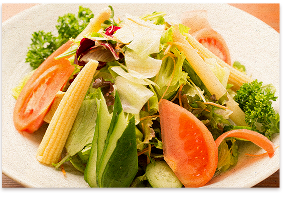 種類豊富な季節の野菜を使ったボリューム満点のダイナマイトサラダ、ご宴会や女性にも人気のメニューです。ハーフサイズもご用意しておりますので、是非お楽しみください。